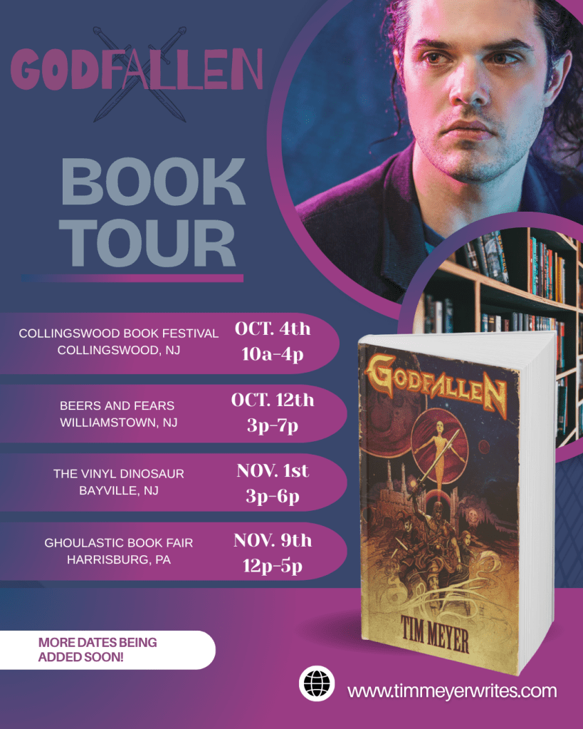 I love a good local book tour! To promote the release of Godfallen, I’ll be embarking on a small(ish) book tour in the New Jersey/PA area. Here are the details!